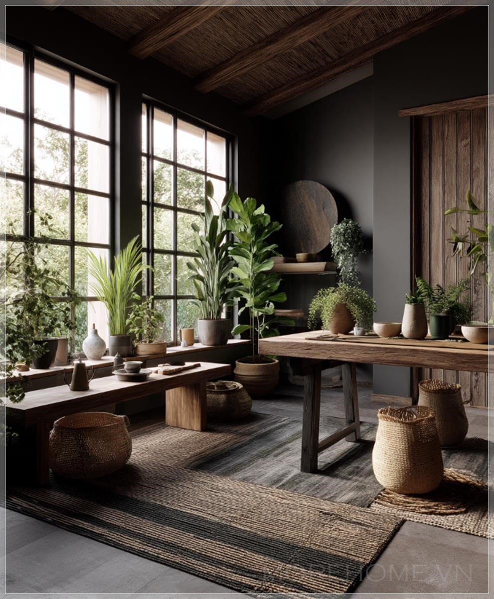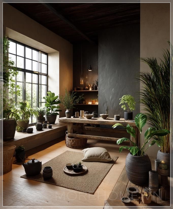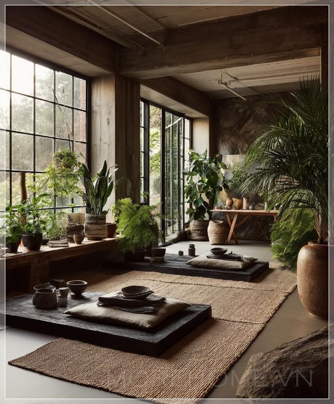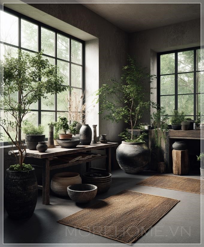 Tạo ra một studio gốm xinh xắn theo phong cách tối giản, với những tấm thảm wabi-sabi đẹp mắt, có những chậu cây cảnh, không gian ấm cúng và tinh tế.