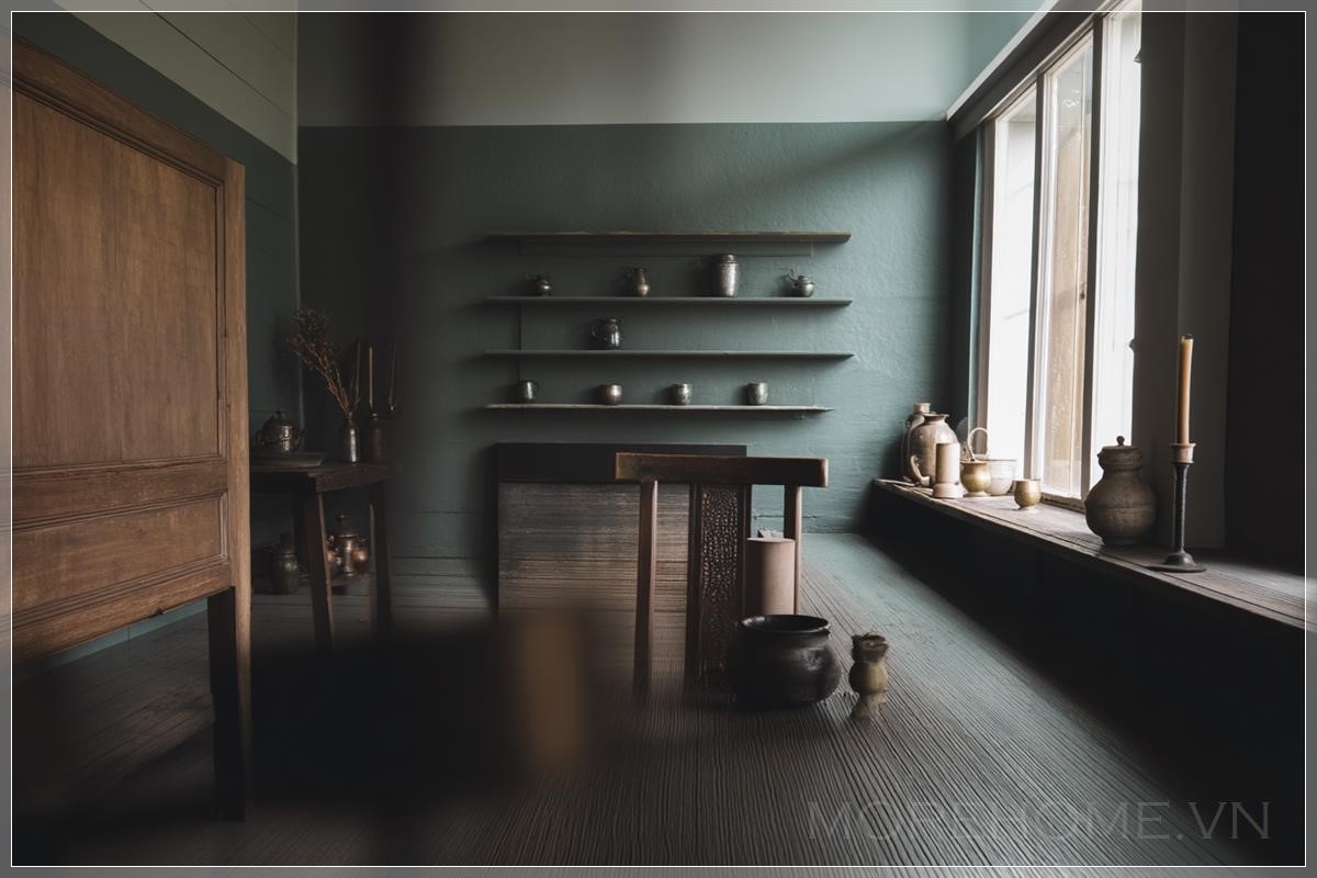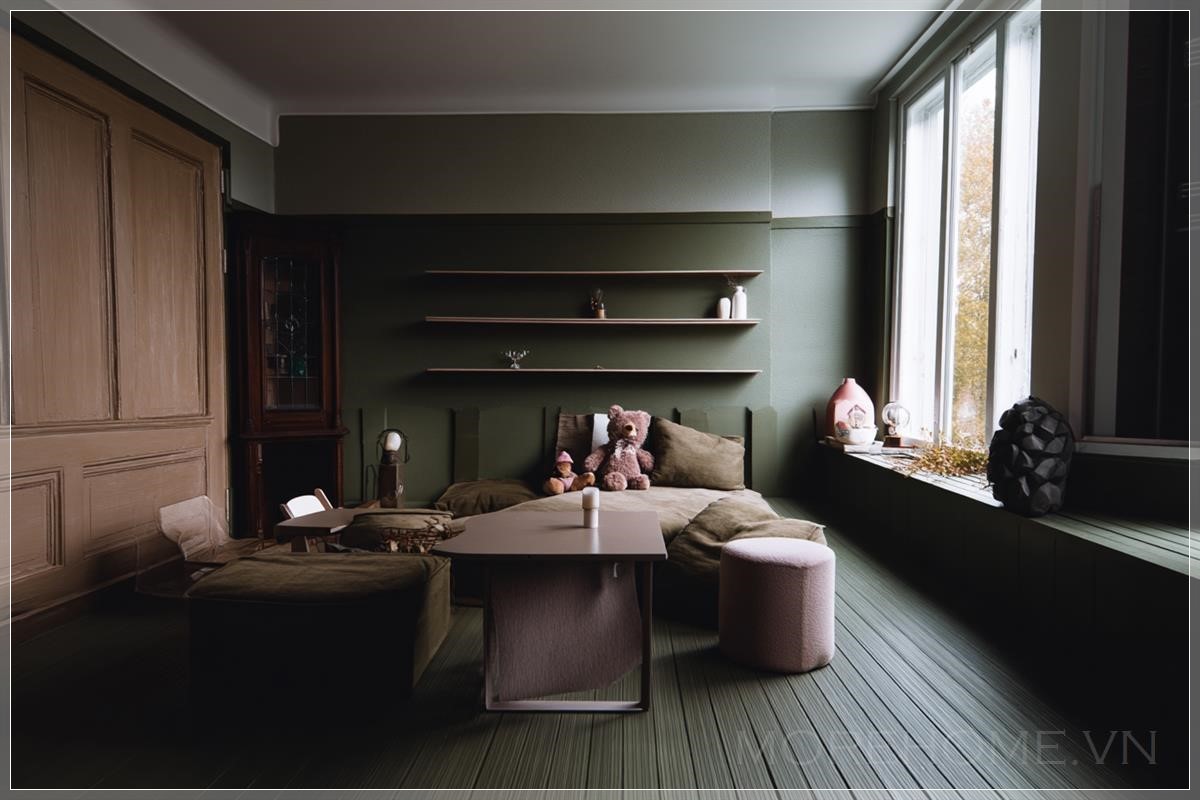 Thay đổi màu tường thành màu xanh ô liu. Liên hệ: https://zalo.me/morehomevietnam
