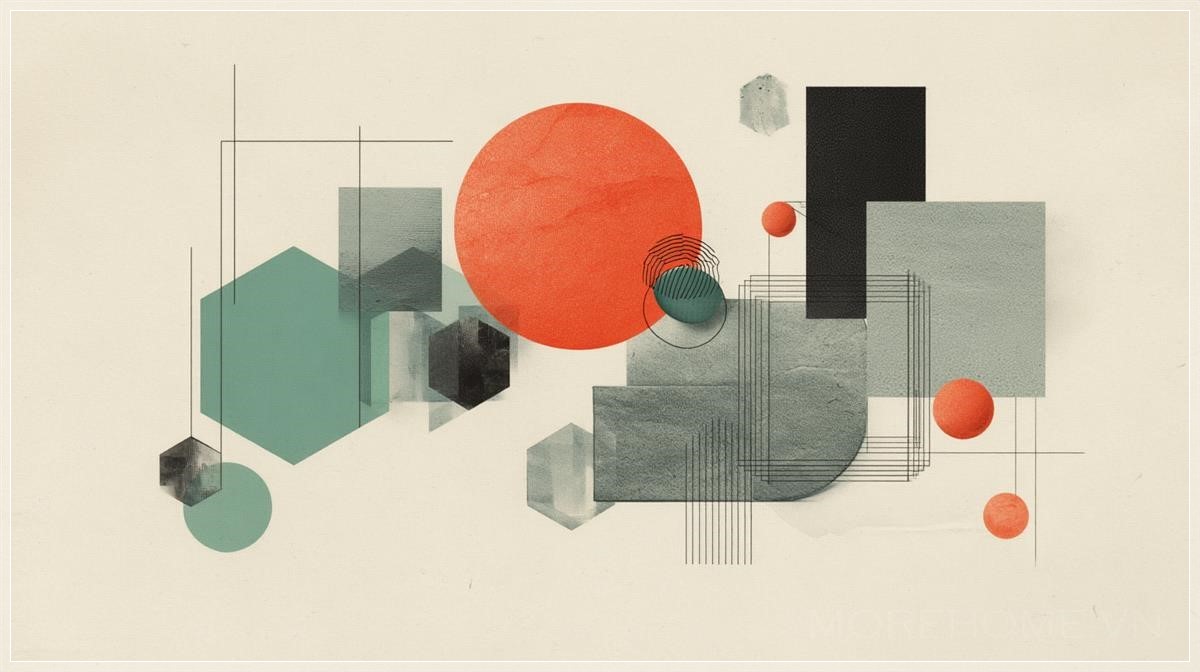 Những hình khối hình học sạch sẽ cắt ngang qua khung hình như những mảnh ghép thời gian. Mỗi hình tròn, mỗi hình vuông, mỗi đường thẳng đều mang trong mình một câu chuyện riêng. Chúng không cần phải hoàn hảo về mặt kỹ thuật, mà quan trọng là sự chân thực trong cách chúng giao tiếp với người xem.