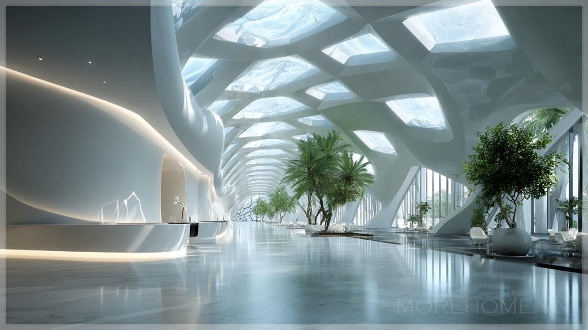 Bước vào những công trình kiến trúc tương lai, bạn sẽ ngay lập tức cảm nhận được sự khác biệt. Ánh sáng tự nhiên tràn ngập mọi ngóc ngách, không phải từ những bóng đèn LED tiết kiệm năng lượng, mà từ chính thiết kế thông minh của các cửa sổ panorama và giếng trời được bố trí một cách tính toán. Mỗi tia nắng đều có mục đích riêng - sưởi ấm vào mùa đông, chiếu sáng tự nhiên vào ban ngày, và tạo nên những khoảnh khắc ánh sáng vàng ma thuật vào hoàng hôn.