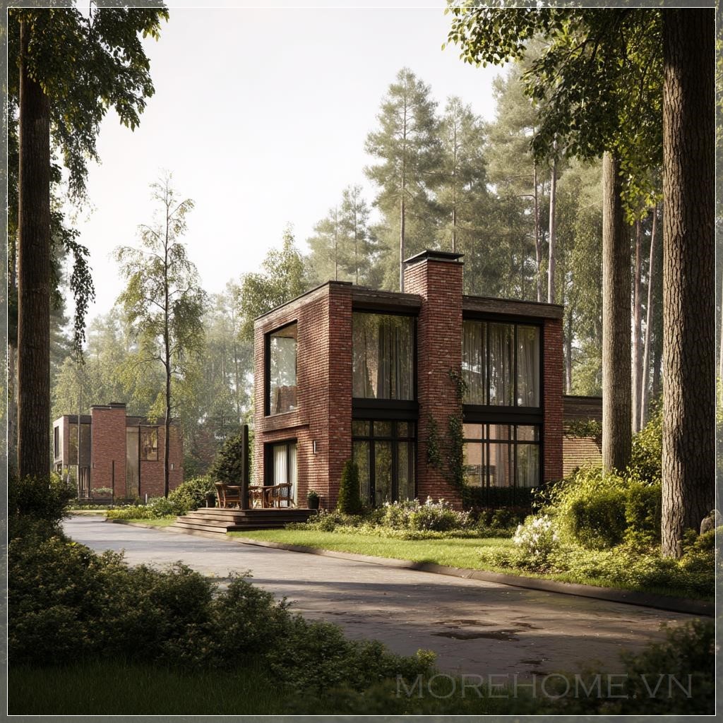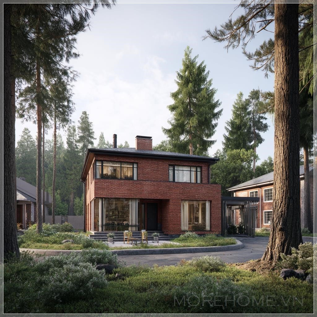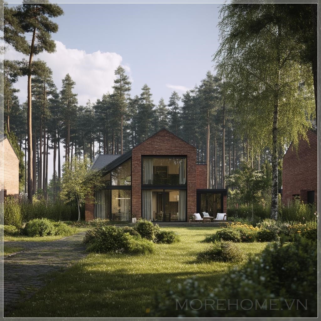 Ngôi nhà hai tầng với thiết kế gạch hiện đại nổi bật giữa khung cảnh xanh mướt, như một viên ngọc quý được đặt trong vòng tay ôm ấp của thiên nhiên. Mỗi chi tiết kiến trúc đều được tính toán kỹ lưỡng, từ những viên gạch được chọn lọc tỉ mỉ đến cách bố trí không gian hài hòa với cảnh quan xung quanh. Phong cách hiện đại không hề lạnh lùng mà ngược lại, nó mang đến cảm giác ấm áp và gần gũi như chính tính cách của người Nga vậy.