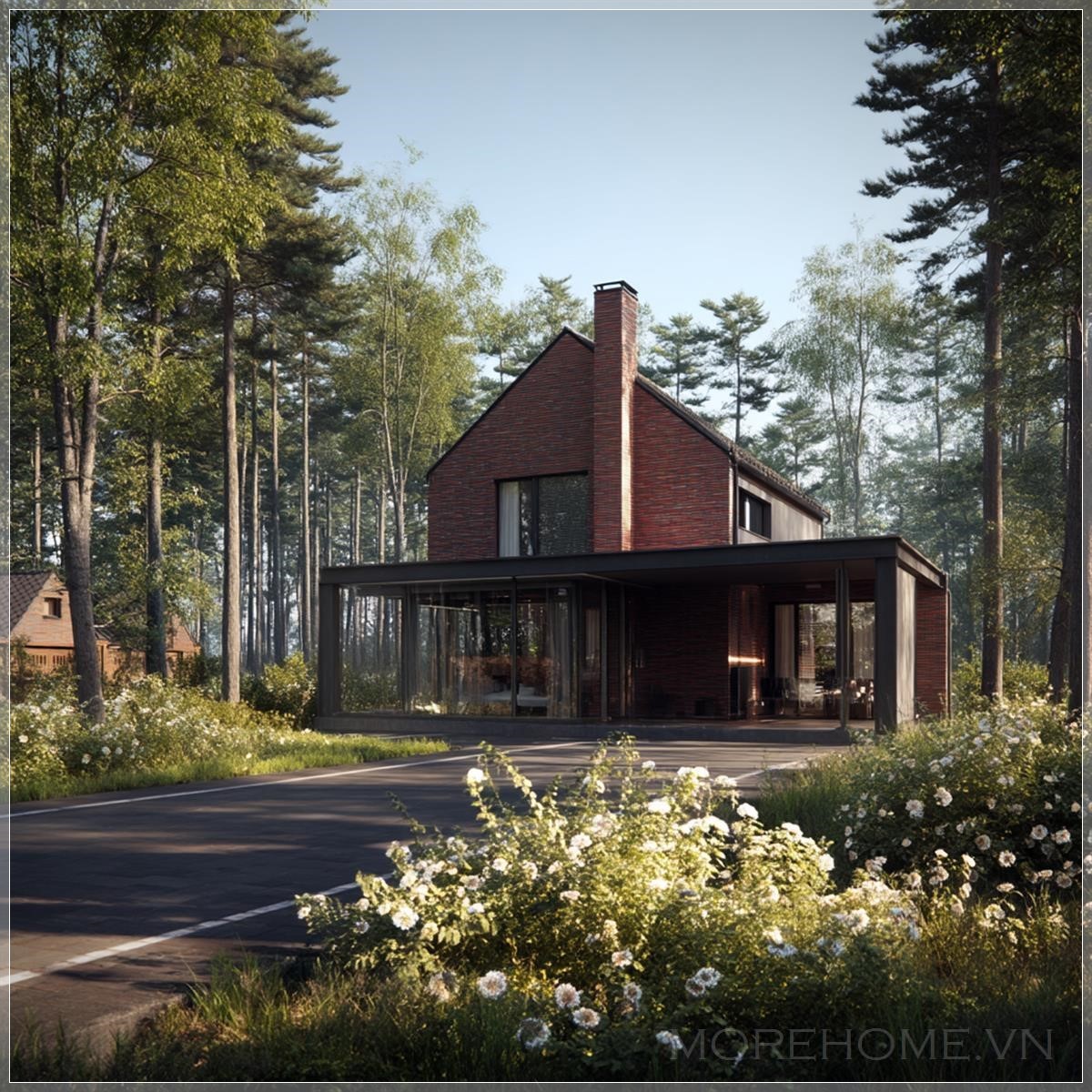 Phía sau ngôi nhà, khu rừng nguyên sinh trải dài như một bức tường xanh bảo vệ sự riêng tư và yên bình. Những tán cây cao vút che phủ bầu trời, tạo nên một màn che tự nhiên lọc ánh sáng mặt trời thành những tia sáng dịu nhẹ. Tiếng chim hót véo von cùng tiếng lá xào xạc trong gió như một bản nhạc thiền định, xua tan mọi căng thẳng của cuộc sống đô thị.