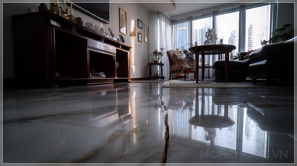 Khi bước chân trên mặt sàn đá cẩm thạch này, cảm giác mát lạnh dễ chịu từ chất liệu tự nhiên truyền lên, tạo nên sự tương phản thú vị với không khí ấm áp của căn phòng. Vết nứt nhỏ ấy trở thành một phần của hành trình khám phá, một chi tiết mà chỉ những người tinh ý mới nhận ra và trân trọng.