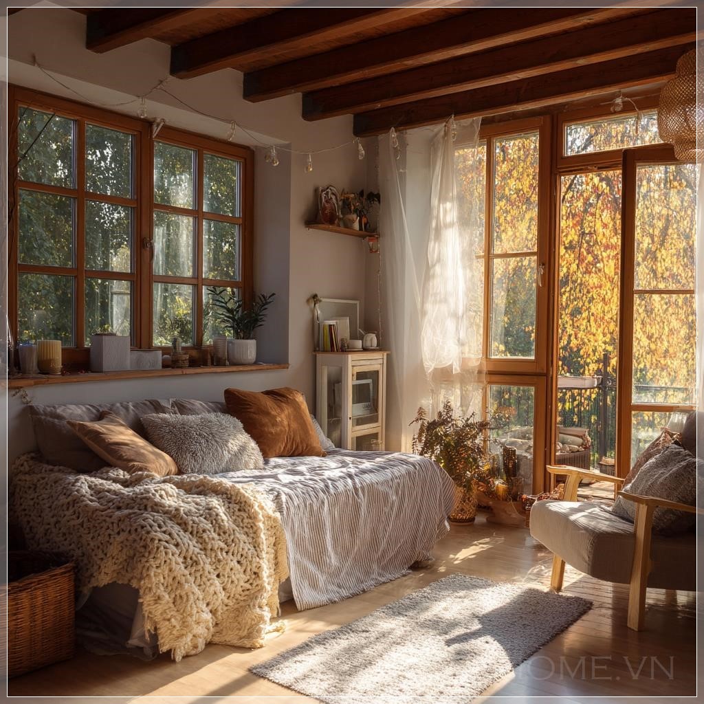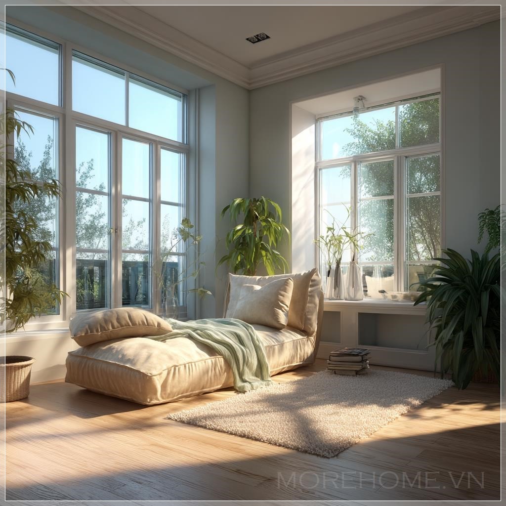 Màu sắc của căn phòng cũng ảnh hưởng đáng kể đến năng lượng không gian. Những tông màu sáng như trắng, be, hoặc các màu pastel nhẹ nhàng không chỉ phản chiếu ánh sáng tốt hơn mà còn tạo cảm giác rộng rãi và thoáng đãng. Khi kết hợp với ánh nắng tự nhiên từ cửa sổ lớn, những màu sắc này như được "sống" lại, tỏa ra vẻ đẹp tinh khôi và thanh thoát.