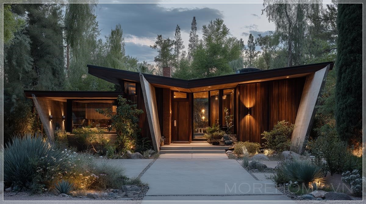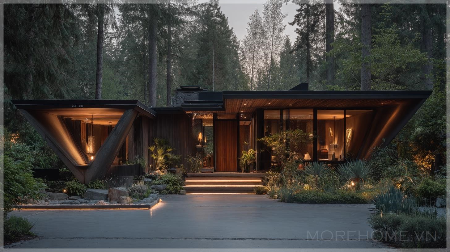 Thiết kế ngôi nhà hiện đại với sự kết hợp giữa bê tông và gỗ tự nhiên đã tạo nên một không gian sống ấm cúng, thoải mái nhưng không kém phần sang trọng. Với kiến trúc mang đậm ảnh hưởng của phong cách Mid-century modern, ngôi nhà này không chỉ là nơi ở mà còn là một tác phẩm nghệ thuật kiến trúc, phản ánh sự hòa hợp giữa con người và thiên nhiên.
